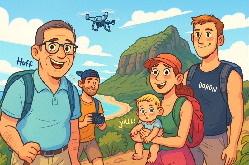 Steve, lui, à 40 ans, semblait presque flotter. Moins essoufflé, plus aérien. Il alternait entre photos, sourires et ce moment presque magique où son drone s’est mis à danser au-dessus du Morne, comme un oiseau curieux, capturant ce que nous vivions d’en bas.